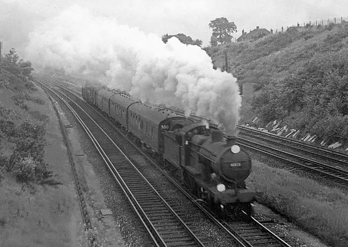 A closer look at E1 Class 4-4-0 loco 31507 on the 07.24 from London Bridge to Ramsgate approaching Elmstead Woods Tunnel on a date believed to be 3rd June 1961.
