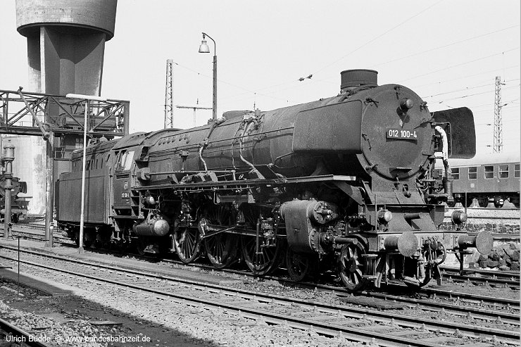 Helmut Boekhoff has sent his photo of 012 100-4 taken by Wolfgang Zitz 1973. It shows 012 100-4 with just a couple of coaches at Emden Hbf on July 26th.
