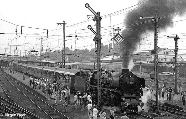 01 1100 leaves Giessen on Father's Day 1987 with a train from Frankfurt to Kassel. Photo from Jürgen Rech.